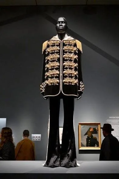 The exhibit is a deep dive into Black menswear—both historical and contemporary—and how tailoring has been used not just for style, but as a tool for identity, resistance, and storytelling. One of the first pieces I saw was a coat that once belonged to Frederick Douglass, displayed alongside a delicately embroidered shirt and an elegant cane. The craftsmanship alone was remarkable, but knowing who wore it—and why—made it feel almost sacred. That set the tone for the rest of the exhibition: this wasn’t just about fashion, it was about presence, dignity, and agency.